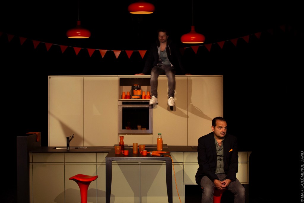 Vincent et Fabrice étaient acteurs. Vincent a continué. Fabrice est devenu vendeur de cuisines. La Théorie de l’enchantement [n’] est [pas] le récit de cette histoire vécue. C’est un jeu sur le temps, sur ce qui aurait pu être, sur ce qui a été. C’est un spectacle, c’est la répétition de ce spectacle qui ne sera jamais monté. C’est une discussion entre amis, une conférence sur le commerce, une comédie sur le capitalisme, un conte sur le marchandage en jeu dans toute relation. C’est un dialogue entre un dealer et un client, entre un marchand et un artiste, sans qu’il soit question de juger l’intérêt ou la vertu de ce qu’ils font mais bien de révéler ce qu’ils sont. Quelle est la part de sincérité du vendeur et de l’acteur ? Comment protéger ce qui échappe encore au marché ? Que reproche Fabrice à Vincent ? Et vice et versa ? L’offre et la demande doivent-elles être appliquées aux théâtres comme aux cuisines ? Vincent admire-t-il Fabrice ? Et vice versa ? La Théorie de l’enchantement est un spectacle pour ceux qui vont au théâtre. Ou qui ont des amis. Ou qui veulent s’acheter une cuisine.